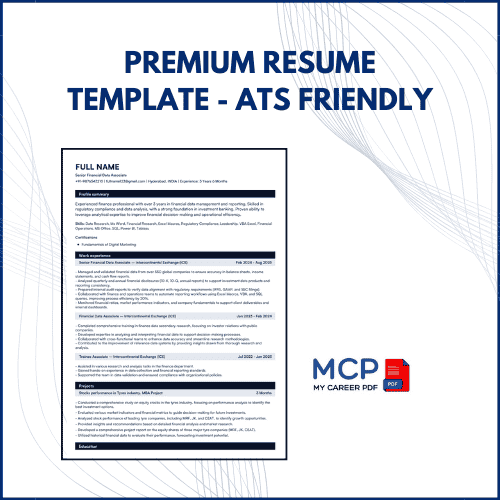 Stand out from the competition with this premium resume professionally designed Premium Resume Template, crafted specifically for Finance Professionals, Data Analysts, Business Analysts, and ESG Analysts who want to make a powerful first impression.